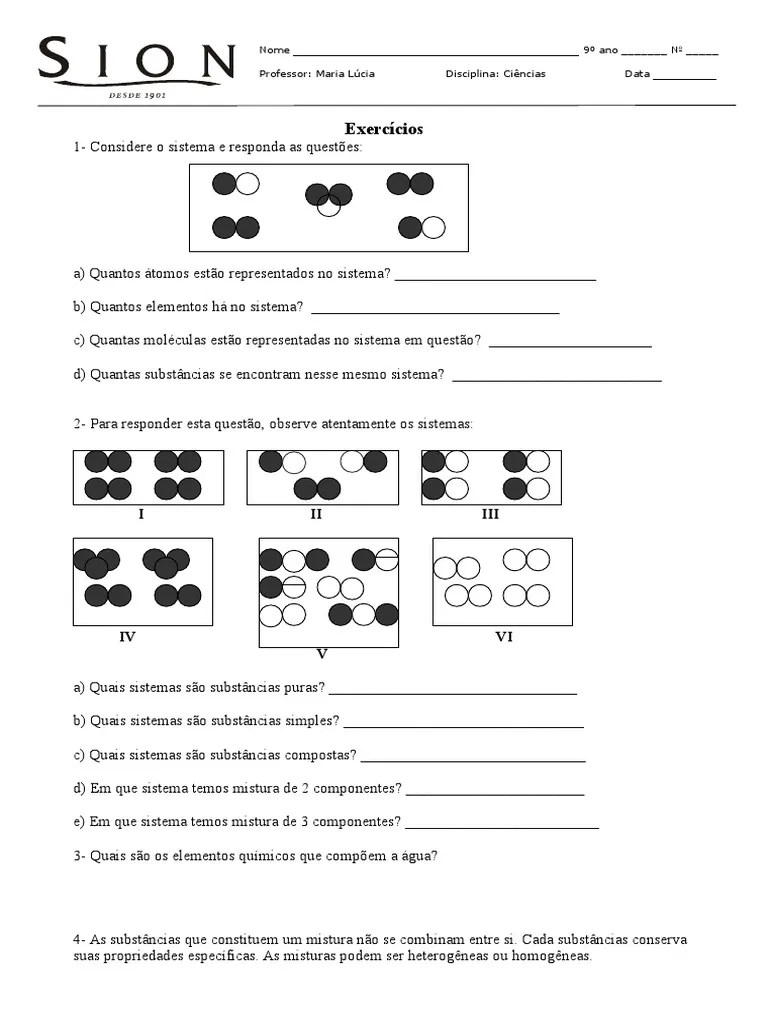 Átomos e moléculas/símbolos químicos e fórmulas químicas 1. Com relação ao átomo de boro (5b 11), é correto afirmar que ele distingue dos demais átomos por possuir. B) o número atômico e o número de nêutrons iguais a 6. Assinale a resposta correta com um x. Fisicamente temos 3 tipos de moléculas e quimicamente. Átomos e moléculas/símbolos químicos e fórmulas químicas 1. Estes exercícios sobre átomos, moléculas e substâncias segundo dalton abordam a identificação de substâncias e seus componentes a partir do modelo de john dalton.. Átomos e moléculas/símbolos químicos e fórmulas químicas 1.